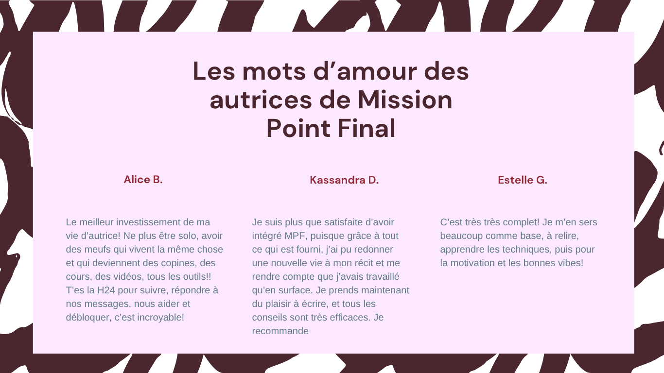 👉 Bonne nouvelle si tu t'es reconnu dans l'une de ces problématiques : Elles ont TOUTES une solution. Et cette solution, c’est Mission Point Final !